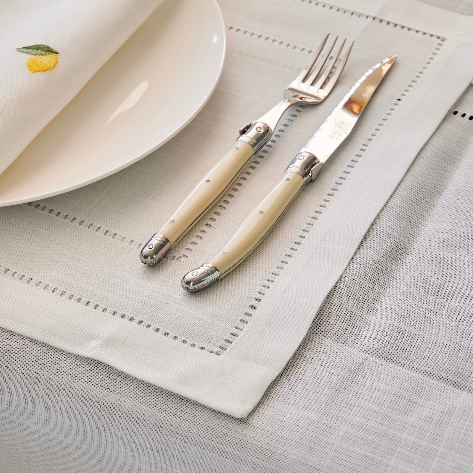 This set of four Bianca napkins is made from a Cotton and Linen blend. The delicate and modern single-tier design, makes them a great table accent for casual or sophisticated dining.